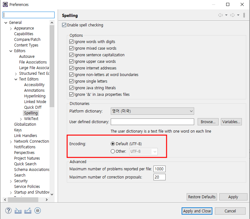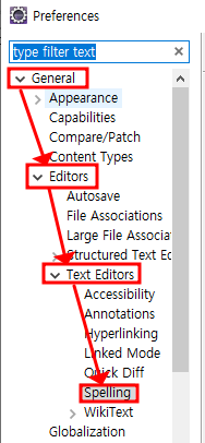 - General - Editors - Text Editors - Spelling 순으로 진행