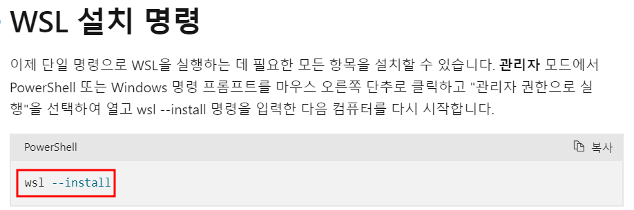 https://learn.microsoft.com/ko-kr/windows/wsl/install