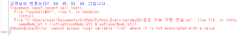 print('당첨 번호는' + str(sysNumList) + '입니다.')