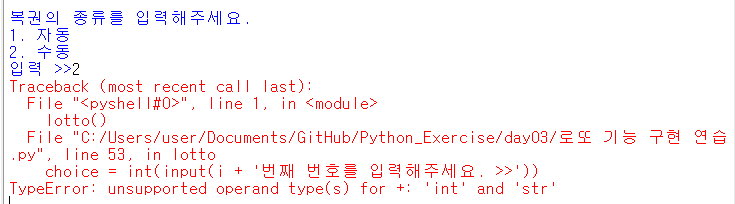 choice = int(input(str(i) + '번째 번호를 입력해주세요. >>'))
