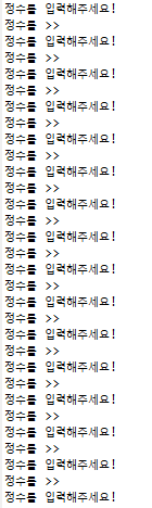 System.out.println("정수를 >>");