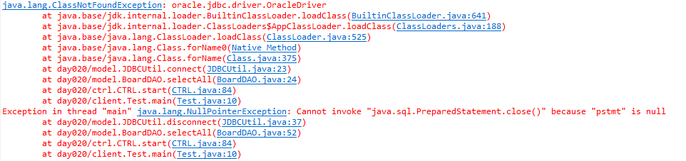 - 프로그램을 실행시키기 위한 JAR파일 누락